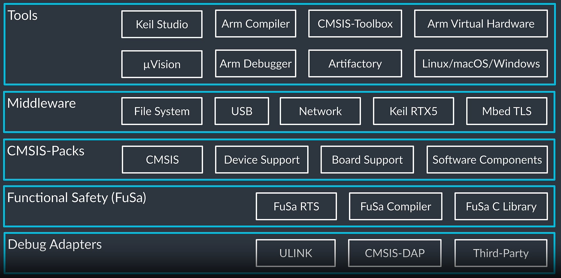 Srdcom verzie 6 je CMSIS-Toolbox, platforma softvérových nástrojov novej generácie postavená na štandardoch CMSIS. Táto výkonná sada nástrojov sa bezproblémovo integruje s pracovnými postupmi CLI aj IDE a ponúka vývojárom jednotný vývoj v rôznych prostrediach. Vďaka podpore viacerých kompilátorov a multiplatformových prostredí vrátane Microsoft VS Code umožňuje CMSIS-Toolbox vývojárom naplno využiť potenciál verzie 6 a odomknúť nové možnosti pri vývoji vstavaného softvéru.